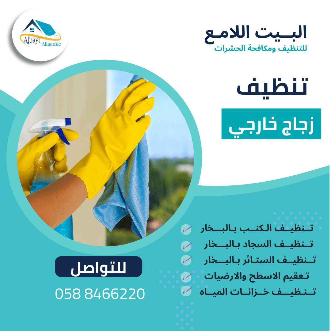 - خدمة النظافة الدورية والمتابعة المستمرة تجدها عند شركة البيت اللامع للتنظيف، حيث إنها على دراية بأن الزجاج الخارجي معرض للكثير من الأتربة، ويجب تنظيفه بشكل مستمر، وهذا ما توفره من خلال العقود التي توقعها مع العملاء.