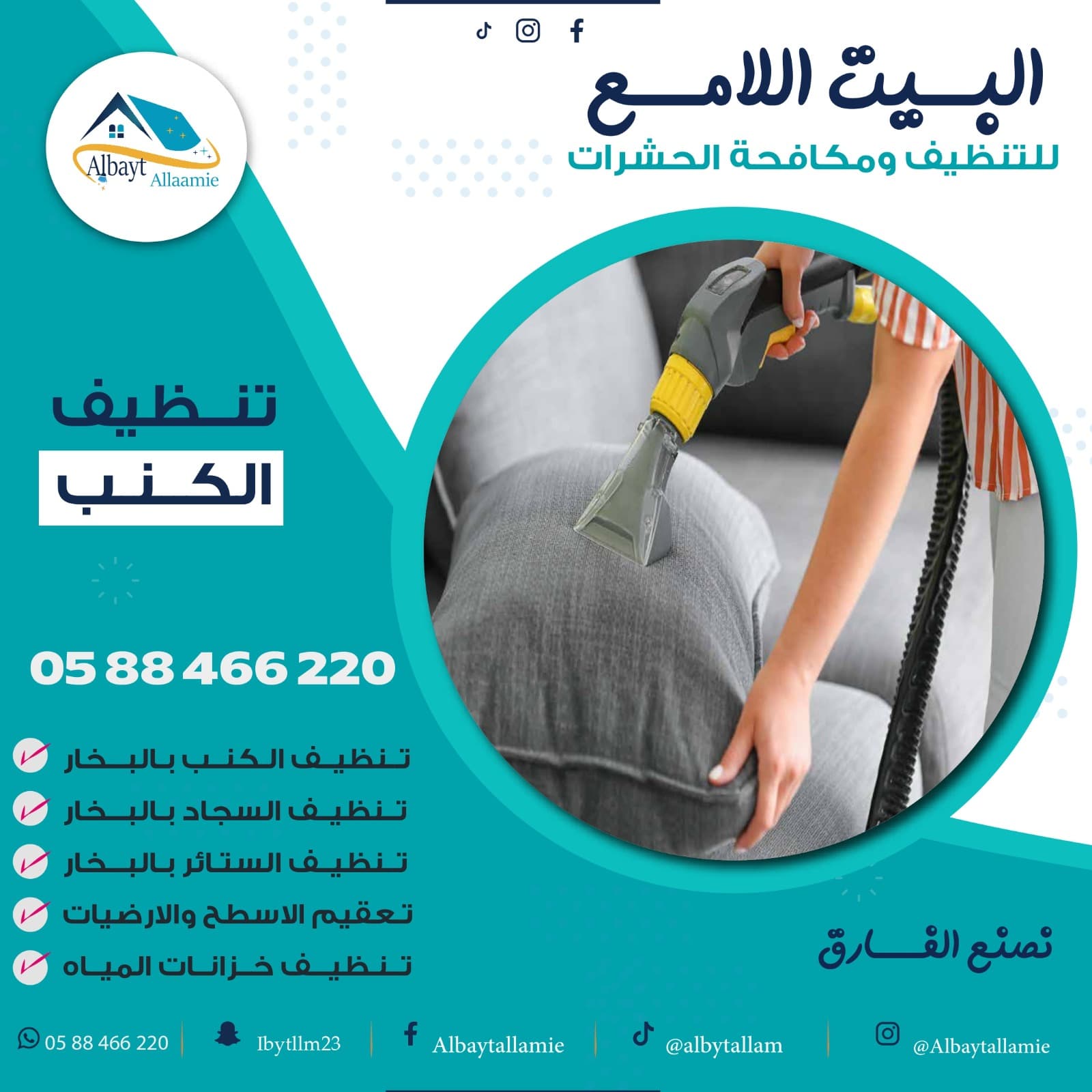 - تتعدد خدماتها فلا تقتصر شركة البيت اللامع للتنظيف على تنظيف الكنب فقط بل تقدم خدمات مختلفة مثل: تنظيف الكنب والمفروشات، وتنظيف الفلل والشركات والمنازل والمكاتب وجميع الأماكن التي تحتاج إلى تنظيف، كما تعمل على مكافحة الحشرات بأقوى المبيدات الصديقة للبيئة التي لا تؤثر على الإنسان أو الحيوان.
