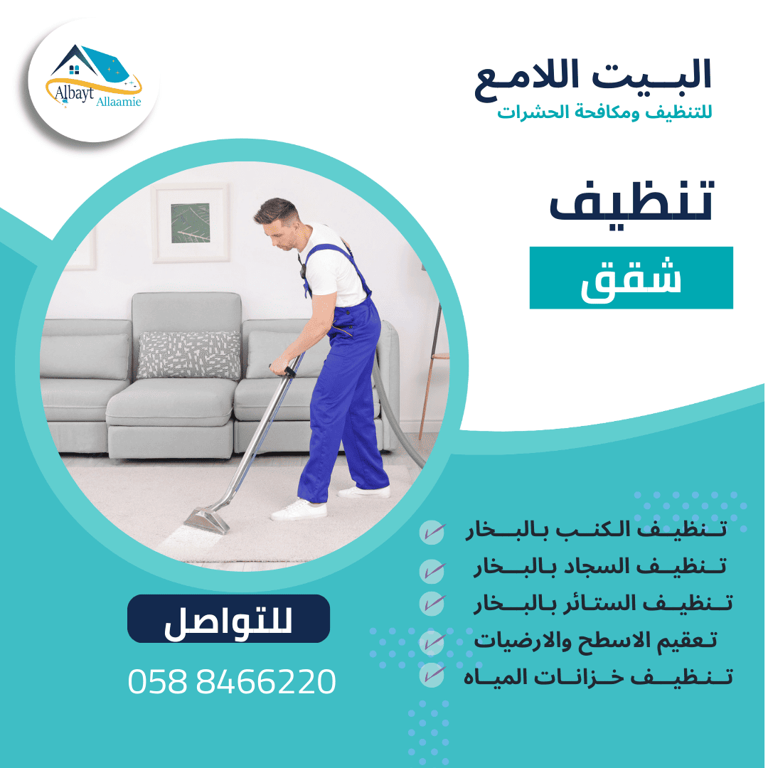 لا تتردد في التواصل مع شركة البيت اللامع للتنظيف وقم بالحصول على خدمات شركة تنظيف شقق بالعين التي تبحث عنها وترغب في تنفيذها داخل منزلك لتجعله نظيف بشكل دائم، ومن أجل المحافظة على صحة أسرتك.